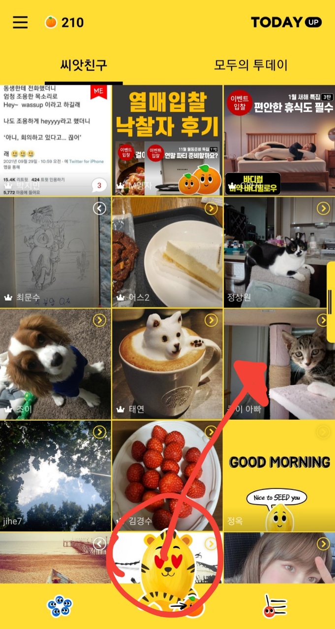 그리고 왼쪽 상단바 클릭 후 저의 프로필사진이나 이름을 클릭하면 사진을 올릴 수 있는 화면이 나옵니다. 여기에 아무 사진이나 올리면 룰렛을 돌릴 수 있는 기회를 받습니다. 하지만 사진을 보고 씨앗을 선물하는 사람도 있을 테니 되도록이면 이목을 끌만한 사진이 좋겠죠?