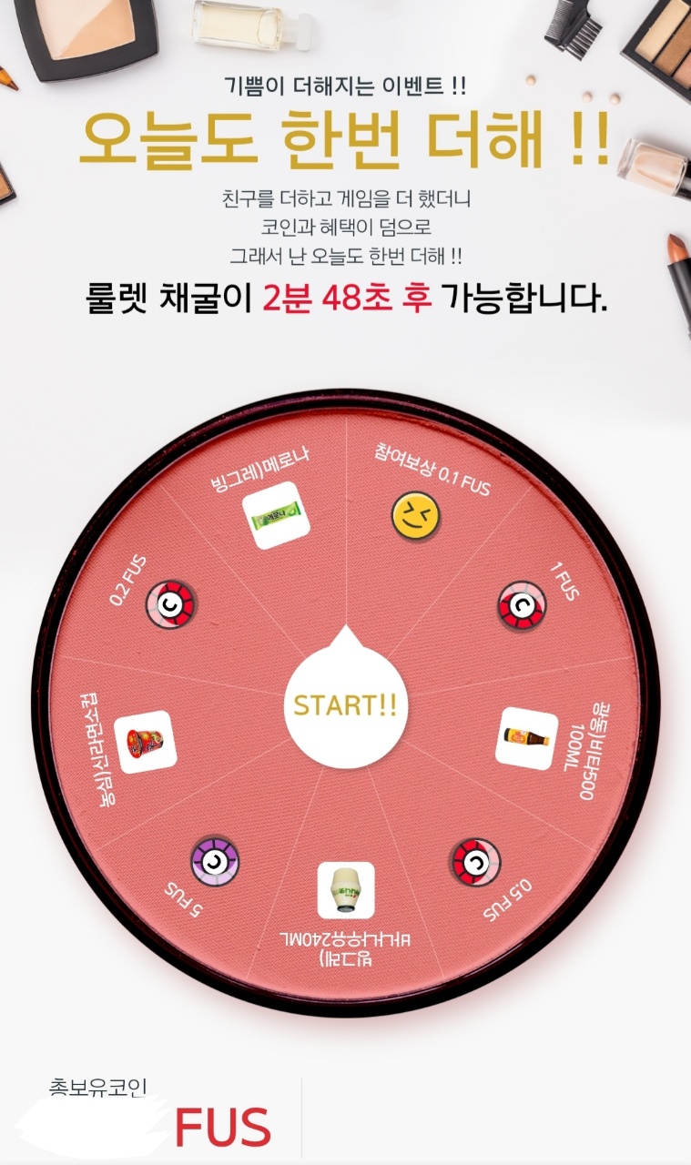 회원가입 - 로그인 후 하단 메뉴의 룰렛을 누릅니다. 그럼 위 사진과 같은 돌림판이 나옵니다. 가운데 START!! 를 누르시면 룰렛이 돌아가고 4가지의 기프티콘 포함, FUS 토큰은 최소 0.1개부터 5개까지 받으실 수 있습니다. 저도 이 앱을 시작한지 얼마 안되었는데 5 FUS는 아직 한 번도 걸린 적 없고 1 FUS는 딱 한 번 걸려봤네요. 그래도 3분에 한 번씩이라 옆에서 작업하면서 하나씩 누르면 몇 개씩 금새 쌓이더라구요 ㅎㅎ... 참고로 출금신청은 최소 FUS 토큰 100개 이상부터 가능하구요, 12월 27일 이후에 채굴한 코인은 4월 말에 출금이 가능하다고 합니다! 자 그럼 이 FUS 토큰은 어디에 상장이 되어있을까요? 바로 XT.com 이라는 거래소인데요! 링크 달아드릴테니 링크 타고 들어가셔서 가입하시면 됩니다!